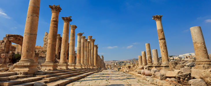 Aujourd’hui, après le petit déjeuner vous rencontrerez votre chauffeur pour commencer votre circuit en Jordanie, il vous emmènera pour la visite d'Amman la capitale de la Jordanie avec au programme la visite de la Citadelle, le théâtre Romain et la vielle ville…Ensuite il prendra la route vers les nord de la Jordanie Pour la visite de Jerash, connue aussi sous le nom de Gerasa. C’était l’une des dix villes les plus riches et autonomes de la Décapole à l’époque romaine. Ensevelie pendant des siècles sous le sable, Jerash est la seule ville de la Décapole à avoir survécu, et offre aujourd'hui des ruines remarquablement intactes. Vous passerez la nuit dans un Guest house unique dans son genre à Umm Qais.